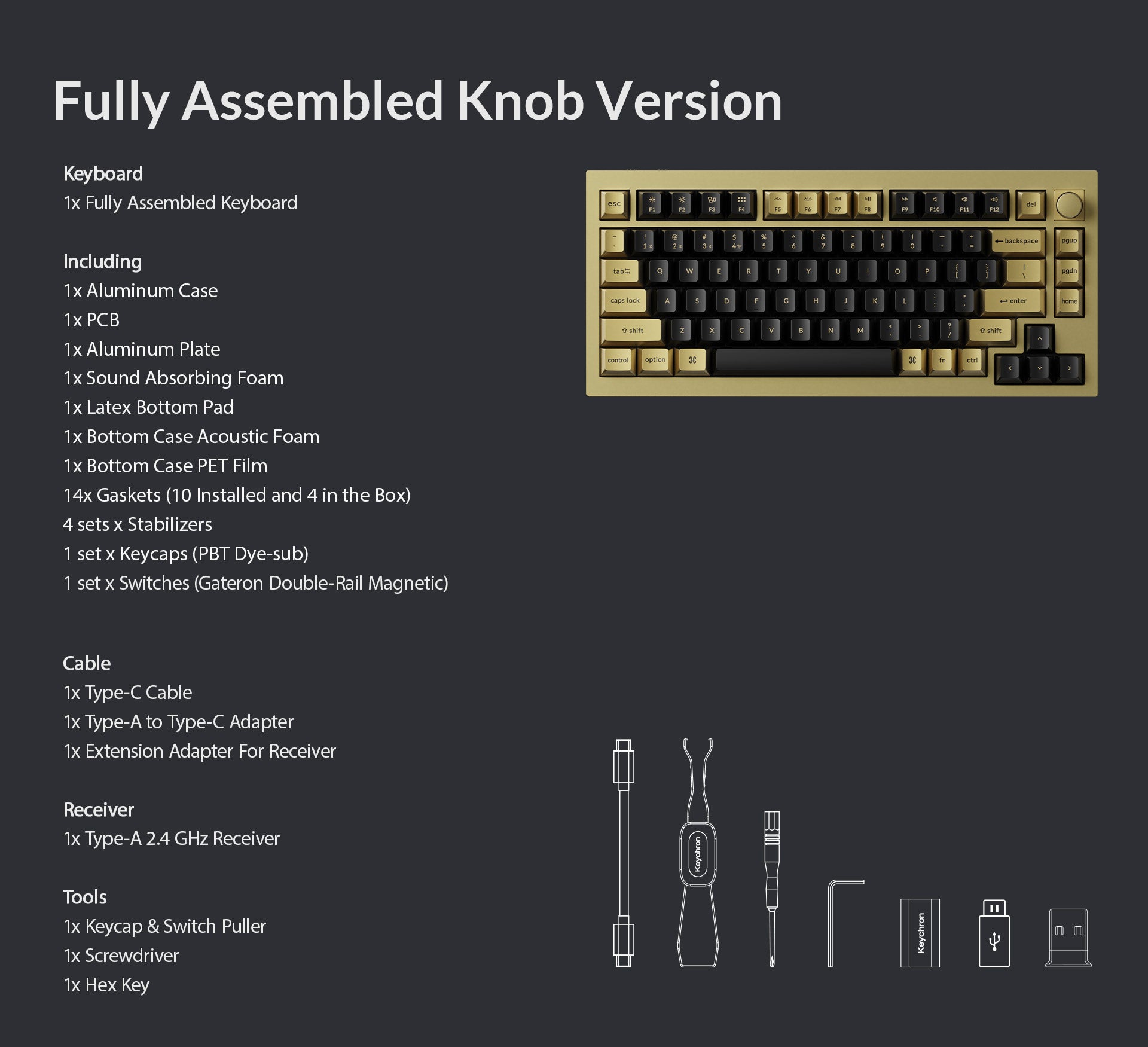 To build a fully customizable keyboard, we designed every component to be able to assemble easily. Therefore, you can customize and adjust each component as you wish.