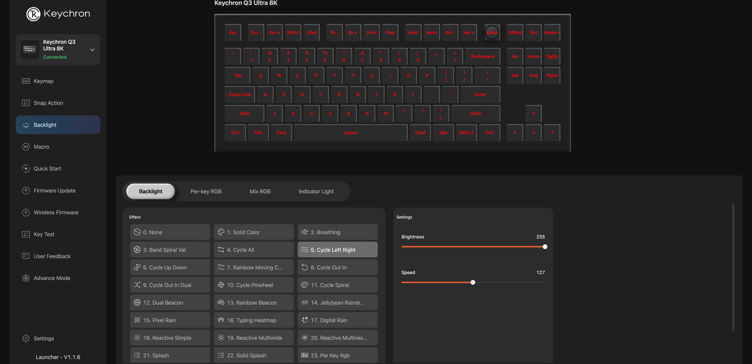 Keychron Q3 Ultra 8K Wireless Custom Mechanical Keyboard - Fully Assembled Knob / Black / Keychron Silk POM Switch - Red is backordered and will ship as soon as it is back in stock.