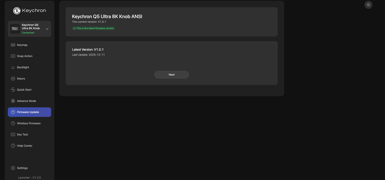 Meet the Keychron Q5 Ultra 8K, a 96% layout premium wireless custom mechanical keyboard engineered for unparalleled performance. Featuring a sleek all-metal build, it supports 2.4 GHz, Bluetooth 5.3, and wired connections. Powered by ZMK firmware, it enables an 8K polling rate in wireless mode while delivering up to 660 hours of battery life. Enhanced with multiple layers of acoustic foam, it delivers a refined typing experience with premium sound. Through Keychron Launcher, complete customization is always within reach.