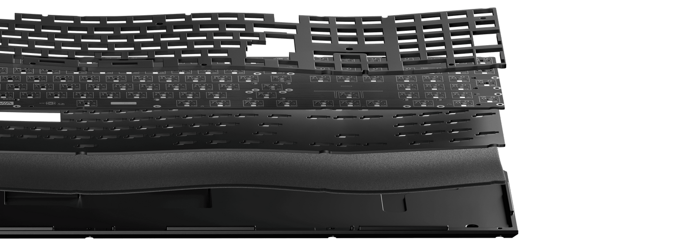 Experience the next level of key sounds and comfort with our gasket mount design together with a flexible PC (Polycarbonate) plate. This design combination allows the keyboard to maintain the flexibility of the gasket structure and improves the overall typing sound.