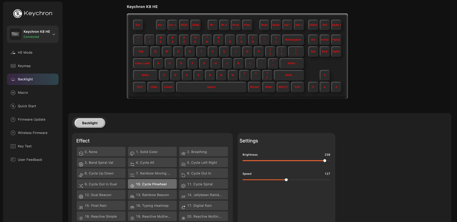 Choose between 22+ backlight modes, and tune the hue, saturation, brightness, and effect speeds right inside the Keychron Launcher web app. Match your style and create an atmosphere that’s uniquely yours.
