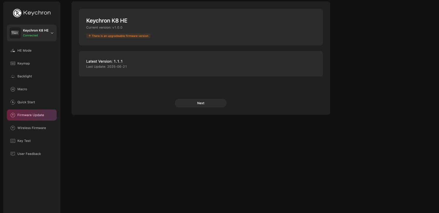 The open-source QMK firmware means endless possibilities for key remapping, macros, shortcuts, and more. Now you can easily customize each key with the Keychron Launcher web app.