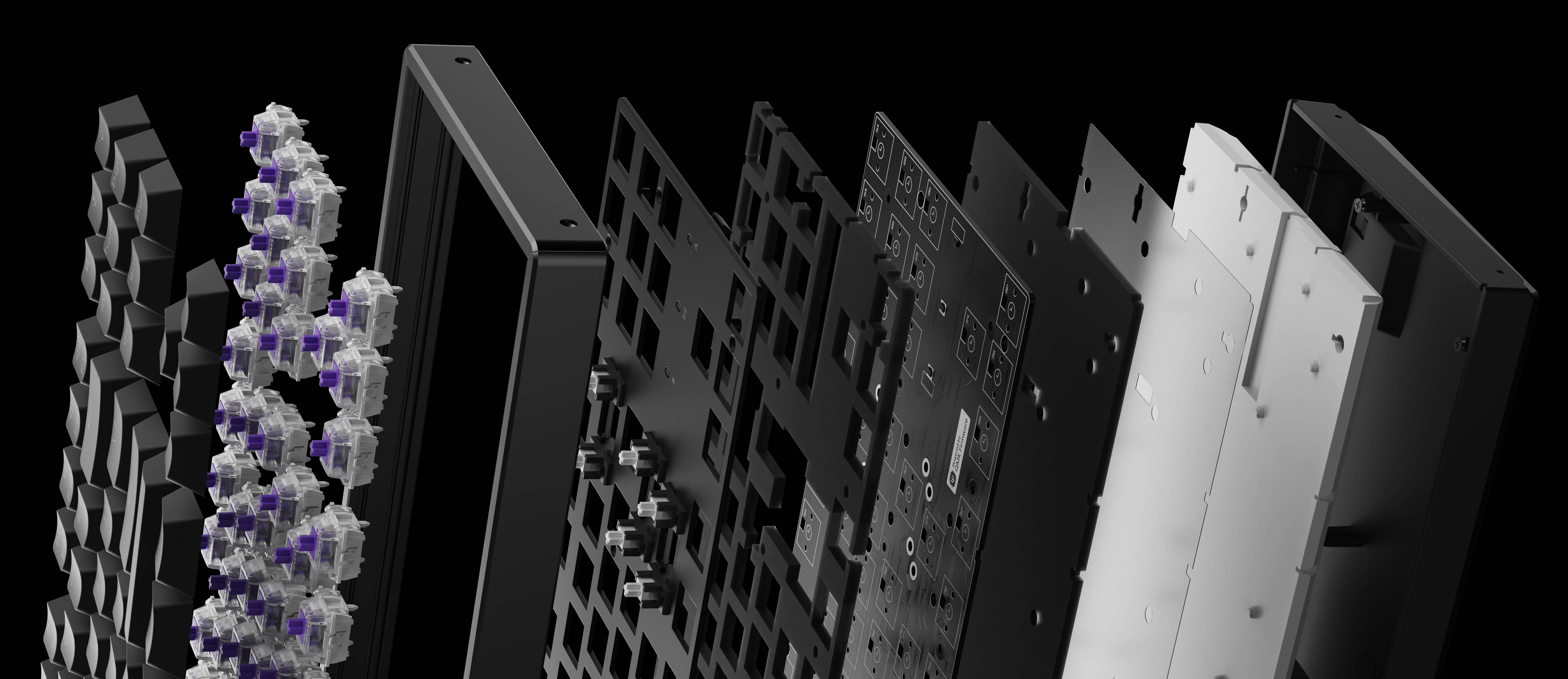 - The keyboard PCB, the case, and the aluminum plate.