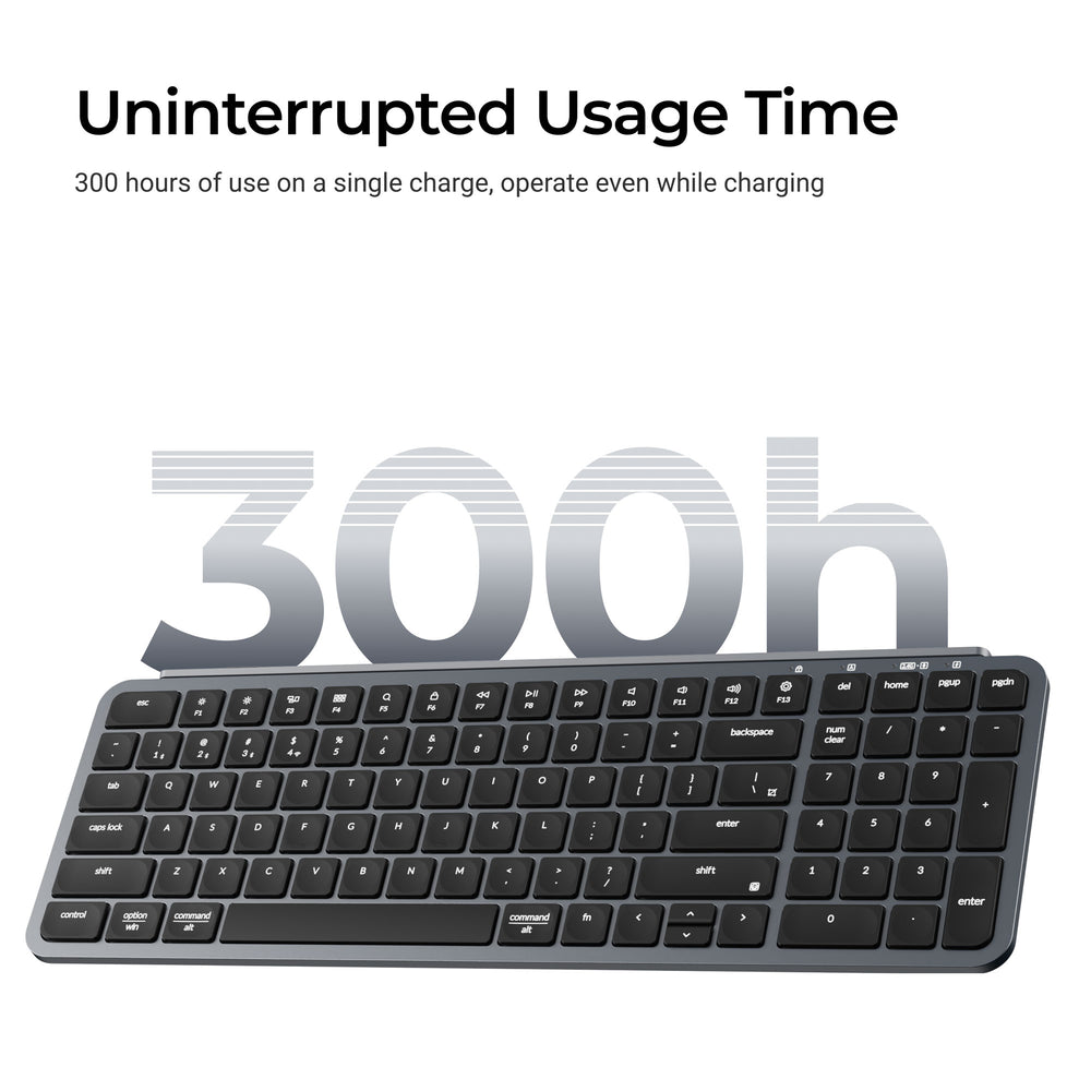 Don't wait for a full charge—operate it even while charging and enjoy uninterrupted usage with an impressive continuous battery life of up to 300 hours, approximately 2 months with 5 hours of daily use. This ensures you can rely on your device for extended periods without the need for frequent recharging.