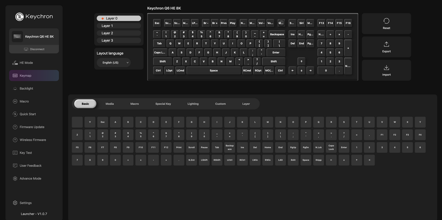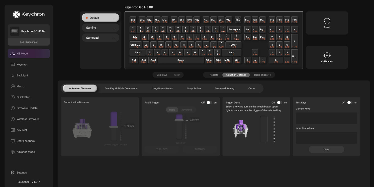 With the Keychron Launcher web app, you can effortlessly remap keys, adjust actuation points, set the magnetic switches, and customize any macro command, shortcuts, or key combinations to enhance gaming or work efficiency. Take control and optimize your productivity like never before.