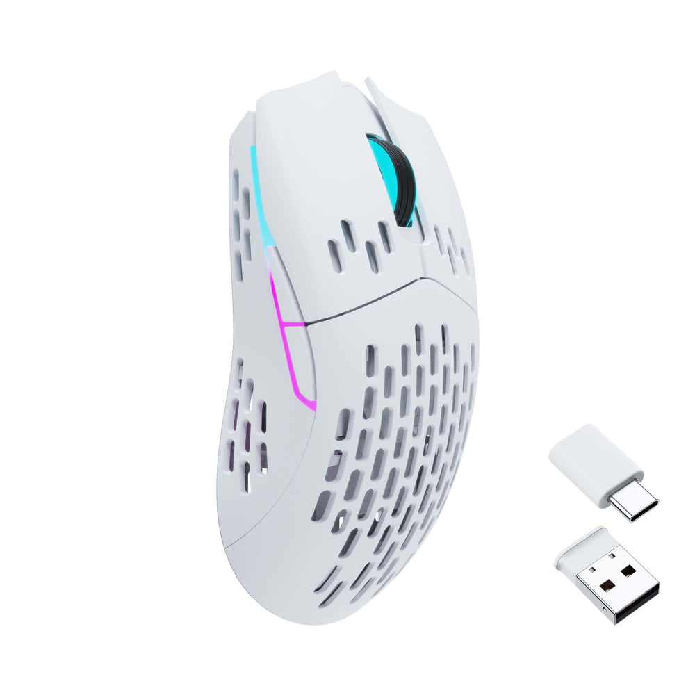 We designed the smallest Type-C 2.4 GHz receiver and a Type-A 2.4 GHz receiver for the mouse. You can pick either of them, plug it in, and play instantly.