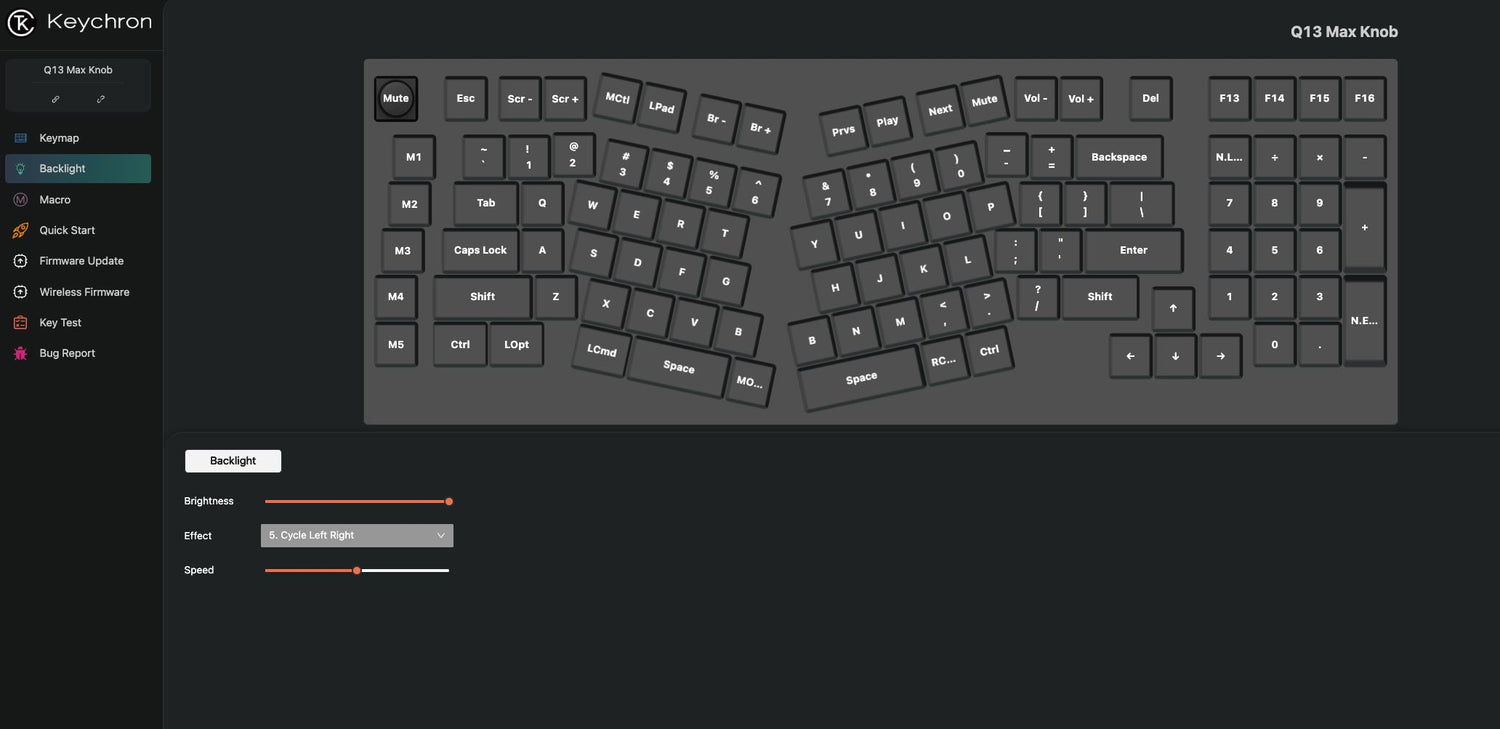 Comes with 22 types of RGB backlight settings (as well as a static white backlight option). You can further fine-tune the RGB hue, saturation, brightness, effect speed, and different modes, or even remap these keys with Keychron Launcher web app.