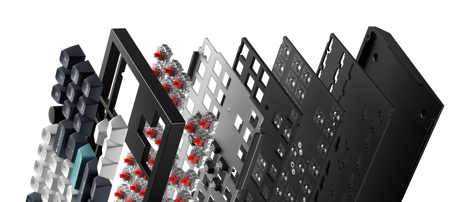 Experience the next level of key sounds and comfort with our gasket mount design together with a flexible PC (Polycarbonate) plate. This design combination allows the keyboard to maintain the flexibility of the gasket structure and improves the overall typing sound.