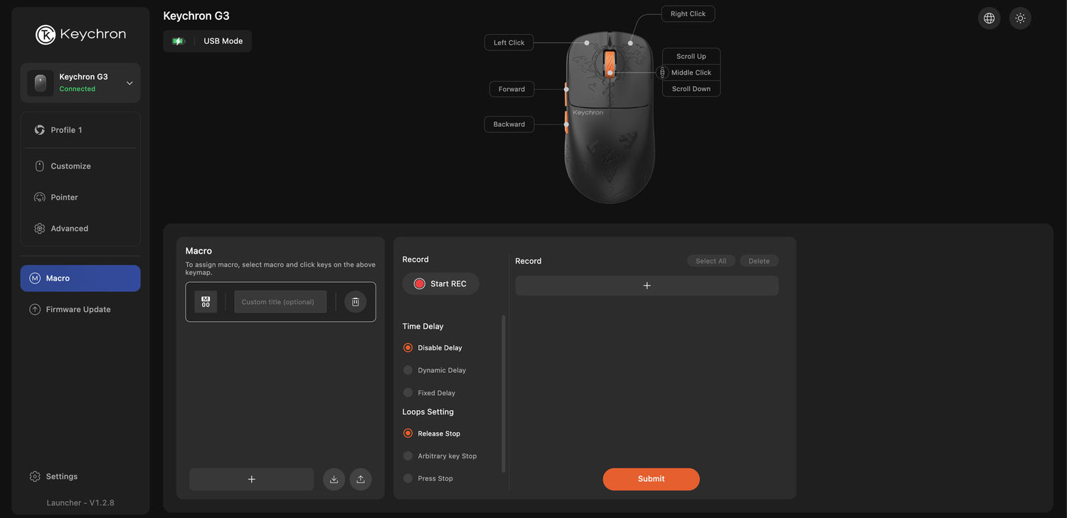 Keychron Launcher is a web page configurator that you can use in the office, school, lab, or government department—anywhere with internet access. Configure your mouse online anytime without the need to download or install files. No hassle, no trouble.