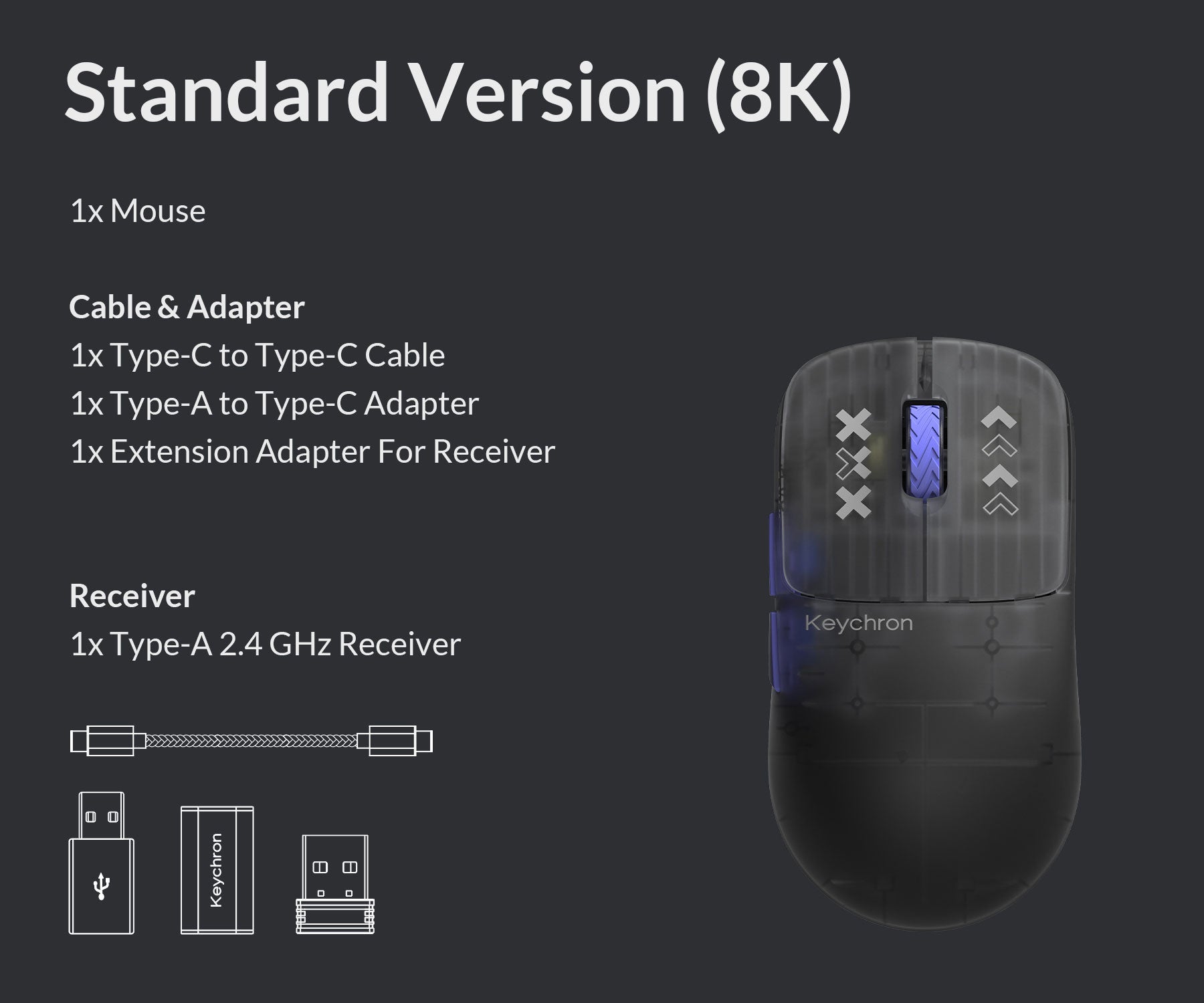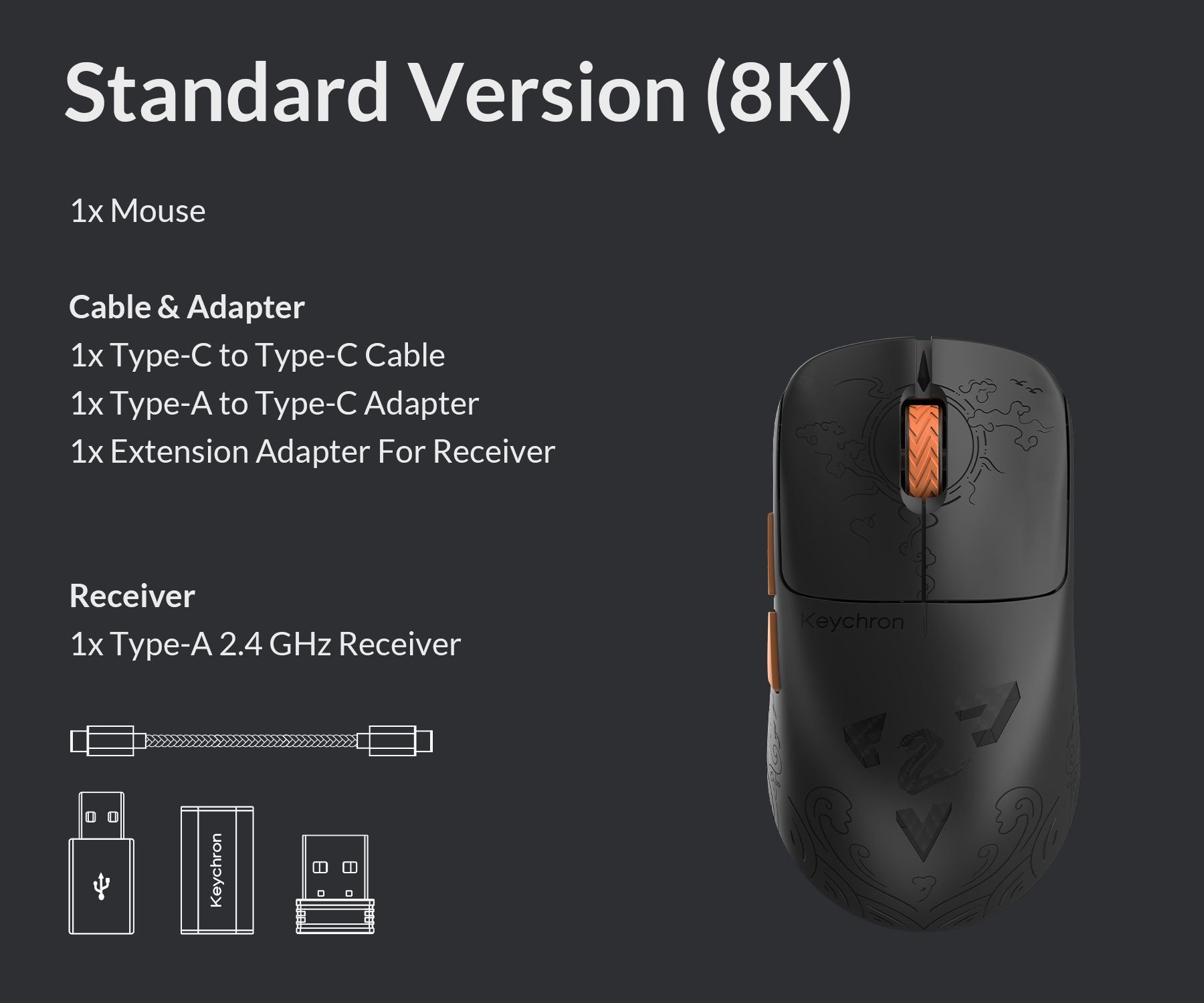 Keychron G3 mouse packs all the best features into its super ergonomic, lightweight carbon fiber body. With flagship PixArt 3950 sensor, up to 8K polling rate, and dual 2.4GHz & Bluetooth connectivity, it delivers exceptional performance to maximize productivity and dominate any scenario—whether at work, in a game, or on the go.