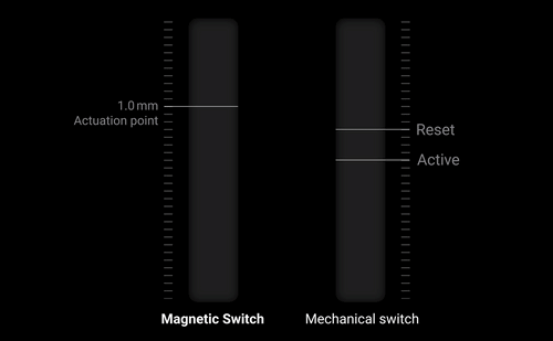Unlike mechanical switches, which depend on physical contact, magnetic switches use magnets to detect key presses. It is effortless to swap out the switch with compatible magnetic switches.