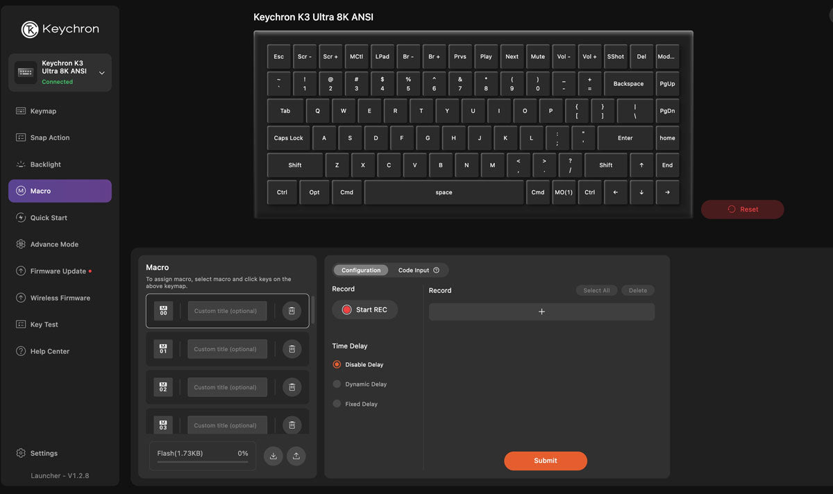 The open-source QMK firmware means endless possibilities for key remapping, macros, shortcuts, and more. Now you can easily customize each key with the Keychron Launcher web app.