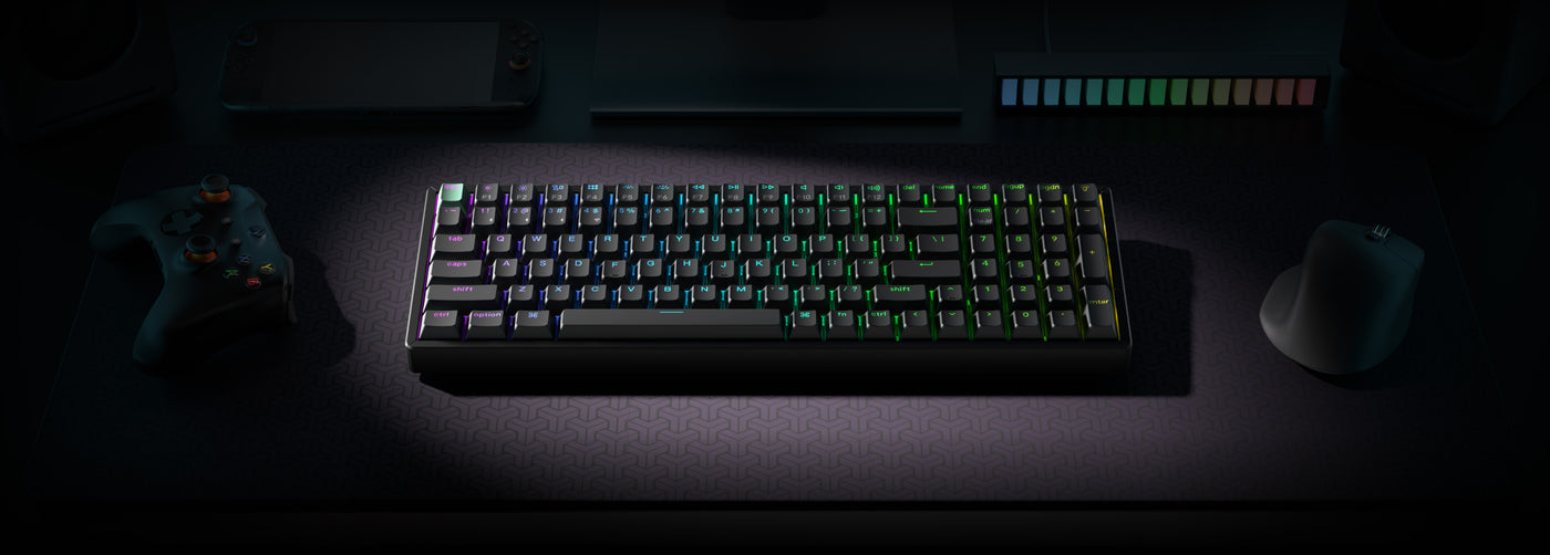 Engineered with a powerful chip (MCU) with 256K flash and QMK open-source firmware to provide more flexibility for developers. The polling rate is 1000 Hz out of the box in Type-C wired mode and 2.4 GHz mode, which greatly helps when competitively gaming.