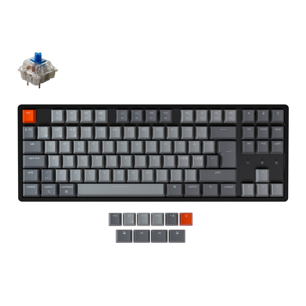 The K8 Nordic ISO keyboard has included keycaps for both Windows and Mac operating systems. Gateron (Hot-swappable) version comes with Gateron switch pre-installed.
