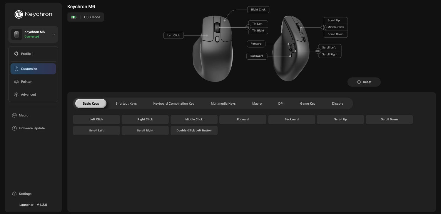 Keychron Launcher is a web page configurator that you can use in the office, school, lab, or government department—anywhere with internet access. Configure your mouse online anytime without the need to download or install files. No hassle, no trouble.