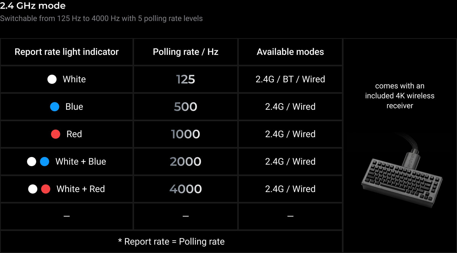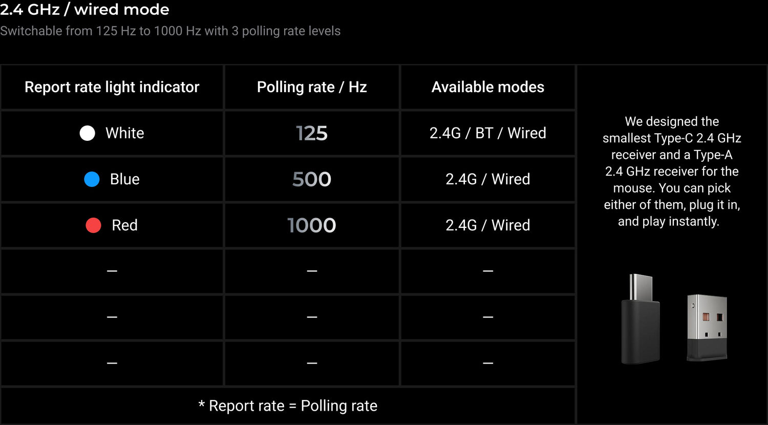 Up to 50 hours at 4K Hz polling rate (2.4 GHz Mode in 8K version)