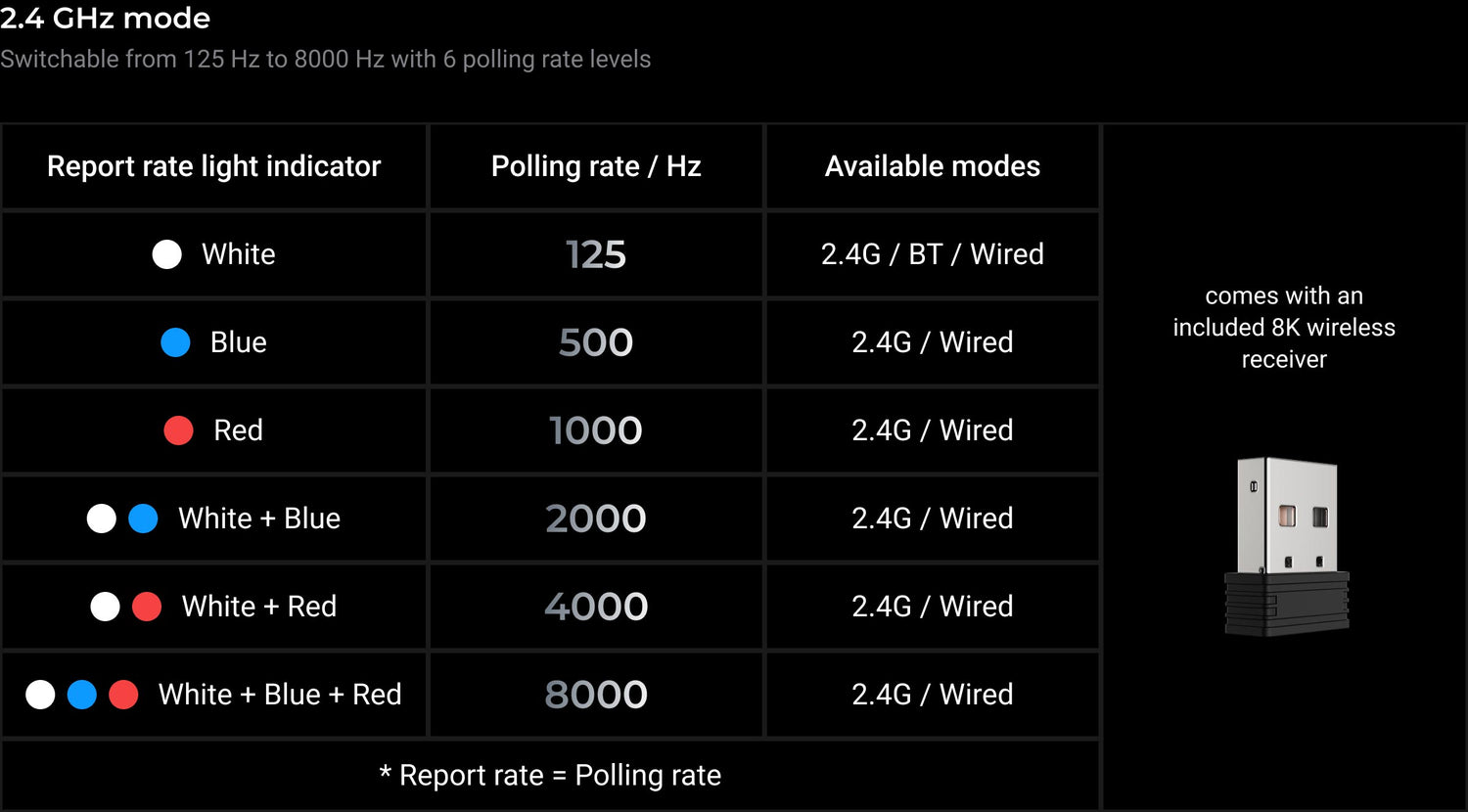 8000 Hz Polling Rate Option
