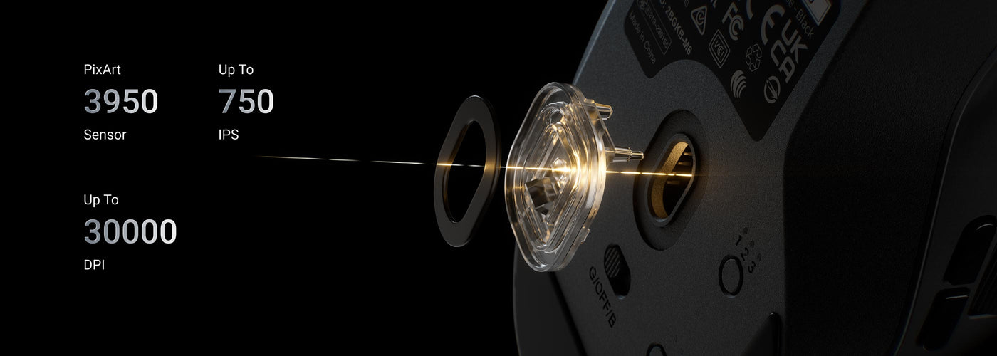 The most competitive grade mouse sensor chip PixArt 3950 for 8K version, with up to 30,000 DPI, up to 750 IPS, and incomparable gripping precision. The perfect sensitivity brings smooth and accurate tracking of your hand's actions whether play or work.