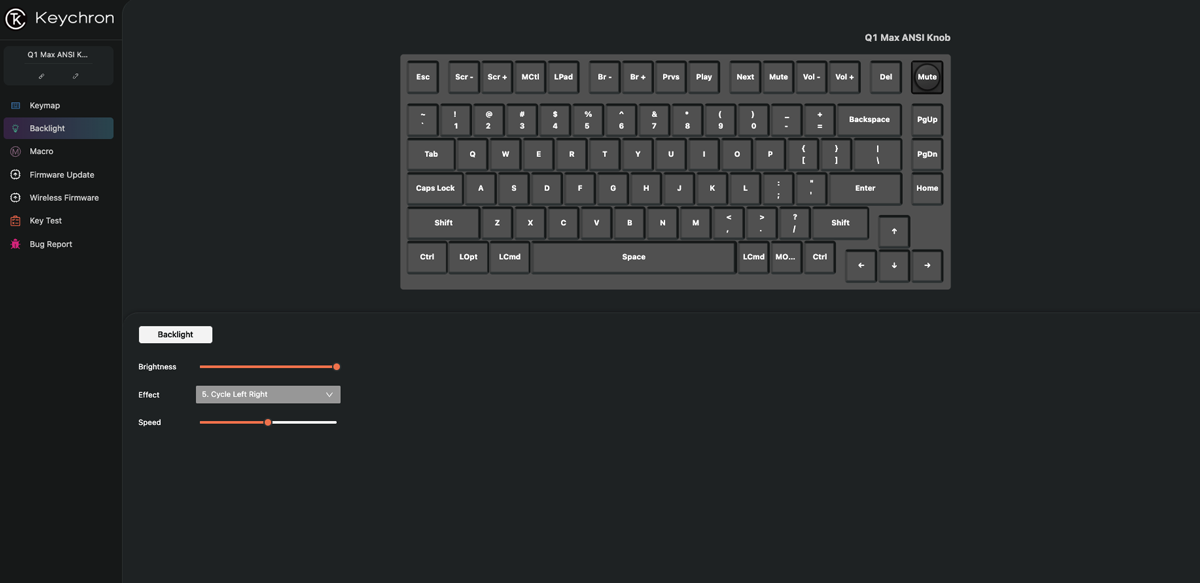Comes with 22 types of RGB backlight settings (as well as a static white backlight option). You can further fine-tune the RGB hue, saturation, brightness, effect speed, and different modes, or even remap these keys with Keychron Launcher web app.