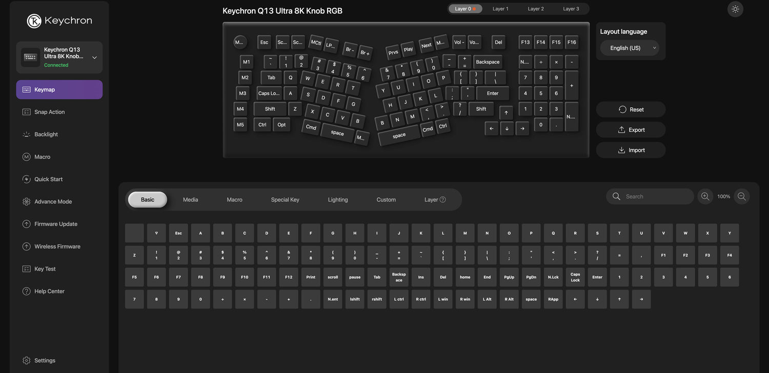 Built with the Mac users’ experience in mind while still retaining compatibility for Windows devices, the Q13 Ultra 8K comes with a system toggle and an additional set of customized keycaps for both Windows and macOS systems. You can now save two different layouts on the keyboard, one for each system.