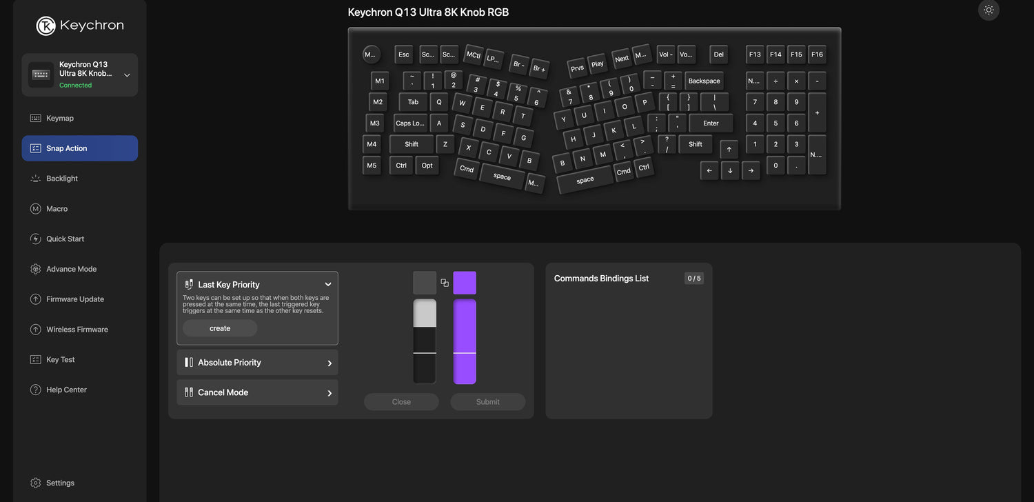 Keychron Q13 Ultra 8K Wireless Custom Mechanical Keyboard - Fully Assembled Knob / Black / Keychron Silk POM Switch - Red is backordered and will ship as soon as it is back in stock.