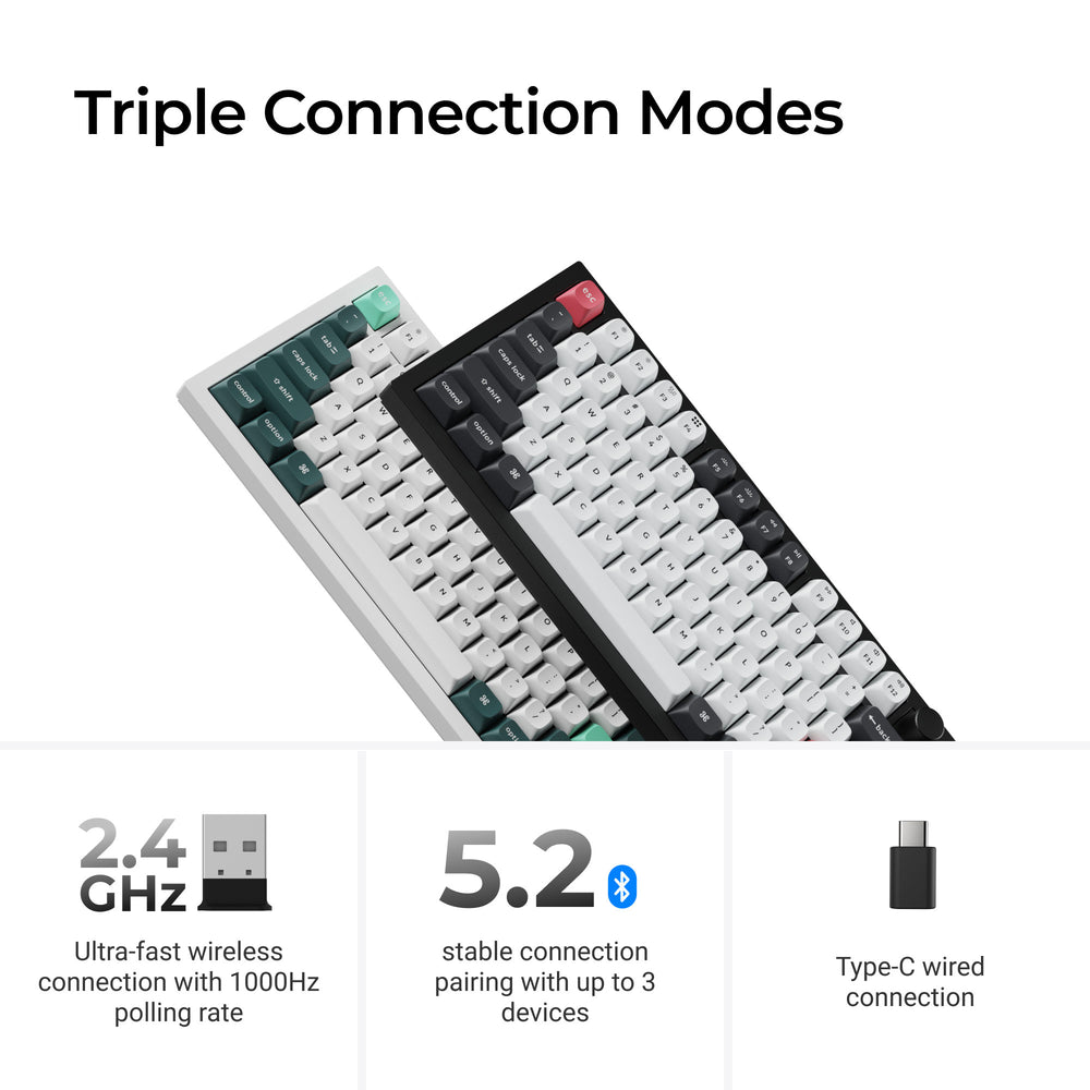 In addition to the Hall Effect magnetic switches, the Q3 HE introduces a 2.4G connection mode with an impressive 1000 Hz polling rate, further ensuring a lightning-fast gaming experience. But that's not all; it also boasts premium features such as Bluetooth connectivity, a double-gasket design, an all-aluminum body, PBT keycaps, and more.