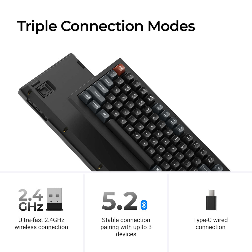 Keychron V1 Ultra 8K Wireless Custom Mechanical Keyboard - Fully Assembled Knob / Black / Keychron Silk POM Switch - Red is backordered and will ship as soon as it is back in stock.