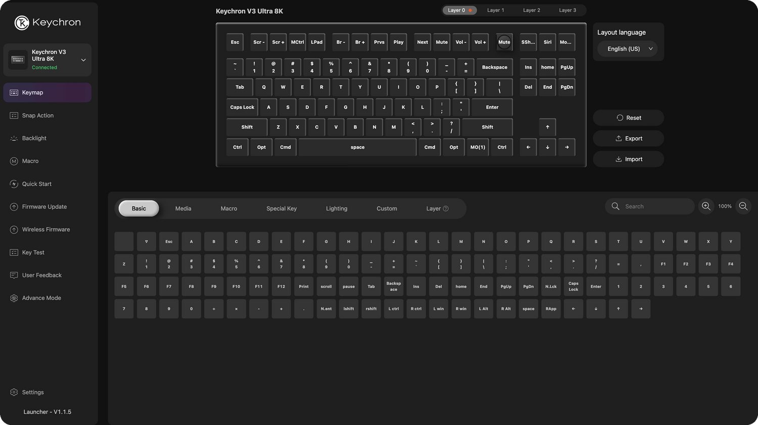 Built with the Mac users’ experience in mind while still retaining compatibility for Windows devices, the V3 Ultra 8K comes with a system toggle and an additional set of customized keycaps for both Windows and macOS systems. You can now save two different layouts on the keyboard, one for each system.