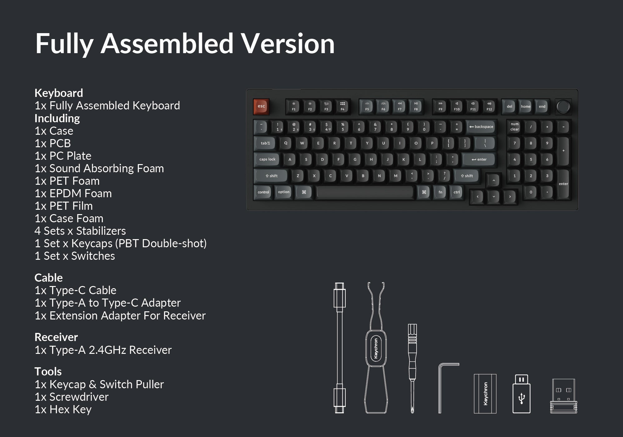 To build a fully customizable keyboard, we designed every component to be able to assemble easily. Therefore, you can customize and adjust each component as you wish.