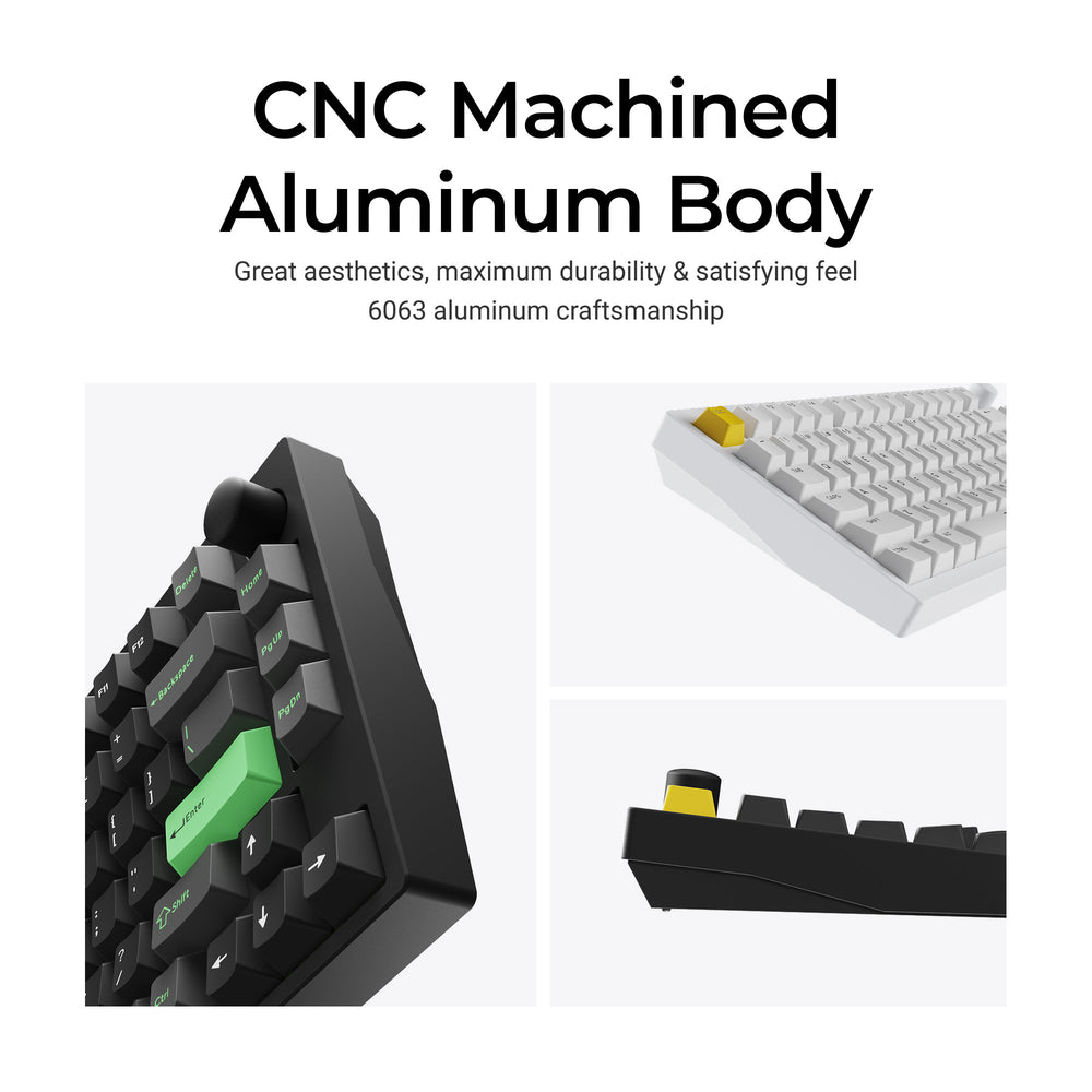 Crafted for durability and aesthetics, the full metal body enhances the keyboard's robustness and imparts a sleek, premium appearance. This high-quality material ensures structural integrity and stability, even during intense gaming sessions, providing a solid and reliable base for every keystroke.